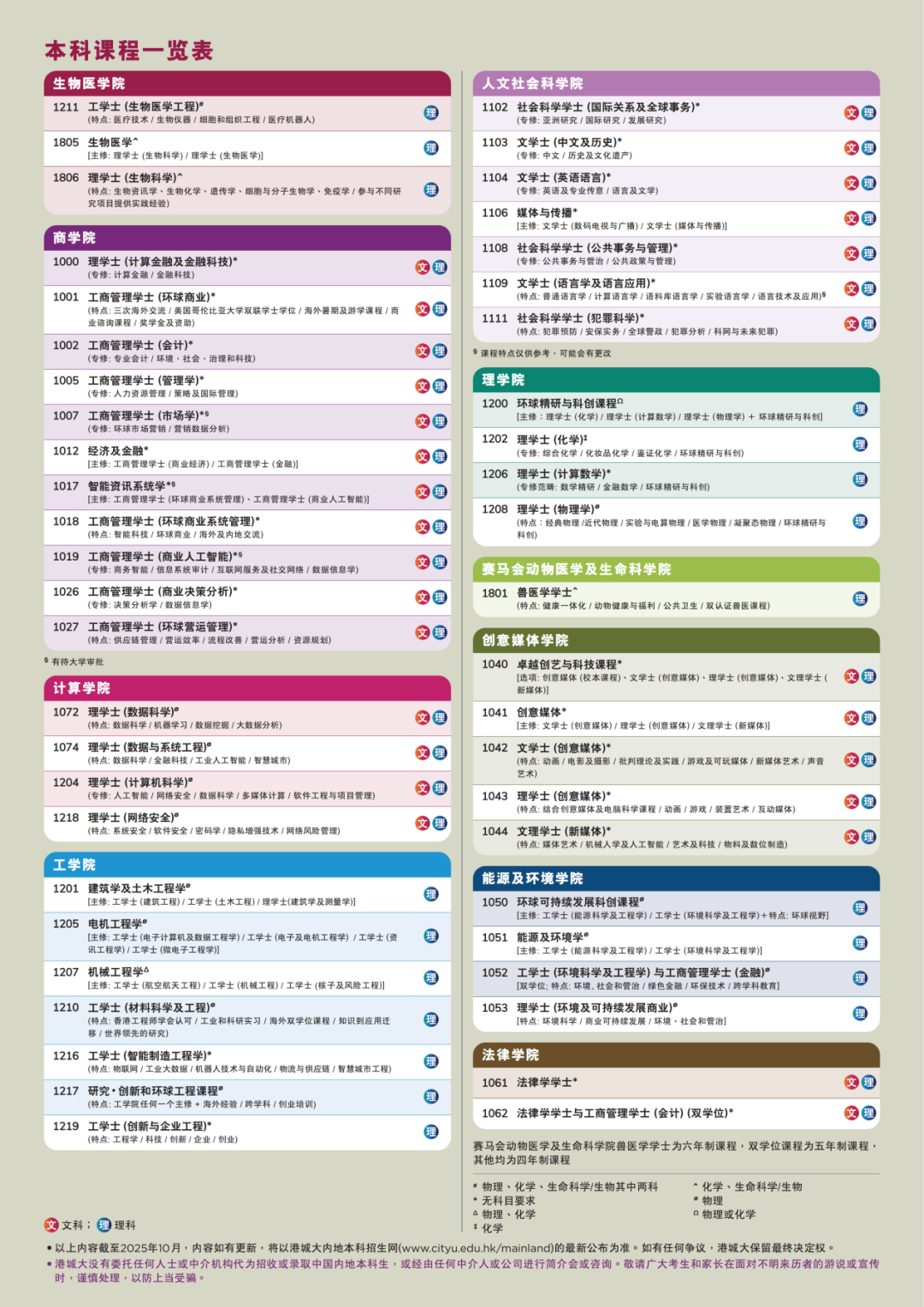 2.个别学院或有特别科目要求,详情请浏览本科课程一览表或学院及专业设置部分。