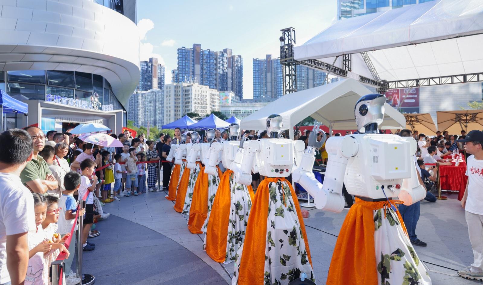 今年才开业的全球首个机器人6S店和全球首个人工智能6S店成为假期龙岗区的另一个爆点。除了常规展示外,10月6日中秋节当天,以“月满中秋·智启未来”为主题的全球首个人机共庆中秋活动在机器人6S店成功举办。机器人不仅敲锣打鼓、弹钢琴、秀舞技、玩拳击,还与到场市民共舞、打灯谜。整个假期,全球首个机器人6S店累计吸引超6万人次到店观摩、体验、消费。全球首个人工智能6S店的日均打卡极客也超3000人次。