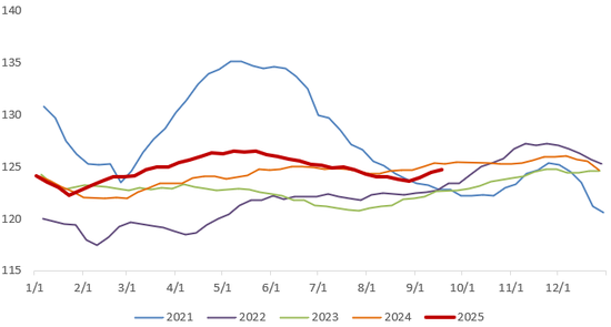 结合前三季度现货表现来看,随着供应压力的不断增长,年内生猪可出栏量逐月递增,猪价不断突破前期低点,截至9月底现货已经跌破13元/kg,四季度猪价是随着供应递增继续下跌或其他,需要关注本轮价格下跌能否提前透支部分年底的供应(尤其对年底肥猪供应量的影响)。目前来看,现货弱势下压栏增重意愿不高,相较往年供应后置的情况较少,猪价阶段性下跌后,随着后续需求的陆续恢复,有止跌企稳可能,但大幅拉涨空间有限,预计触底后小幅反弹再次回到14元/kg附近开启震荡走势。