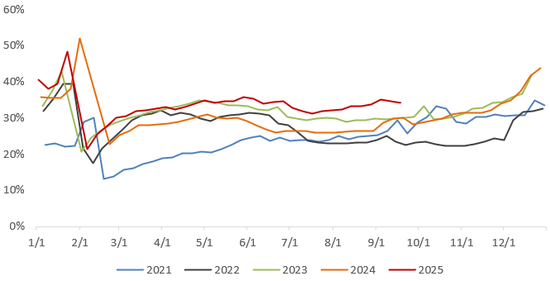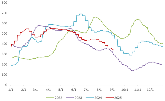 2025年以来,农业农村部统计的能繁母猪存栏基本保持稳定为主,月度环比仅有小幅下滑,截至7月母猪存栏量为4042万头,环比下跌1万头,仍高于国家3950万头的产能调整目标,后续仍有去化空间。卓创统计数据母猪存栏7月开始已经连续下滑两个月,累积下降2%-3%,主要以大型企业下降为主,政策对部分头部企业的产能起到了引导作用,但整体下降幅度及速度均偏小,养殖端有“你”降“我”增的行为,主要原因为行业2024年以来已经连续盈利大约一年半的时间,养殖端主动去产能意愿较低,9月现货跌至成本附近后,后续价格若继续下跌,叠加政策端指引,产能去化有望加速,关注四季度现货表现。